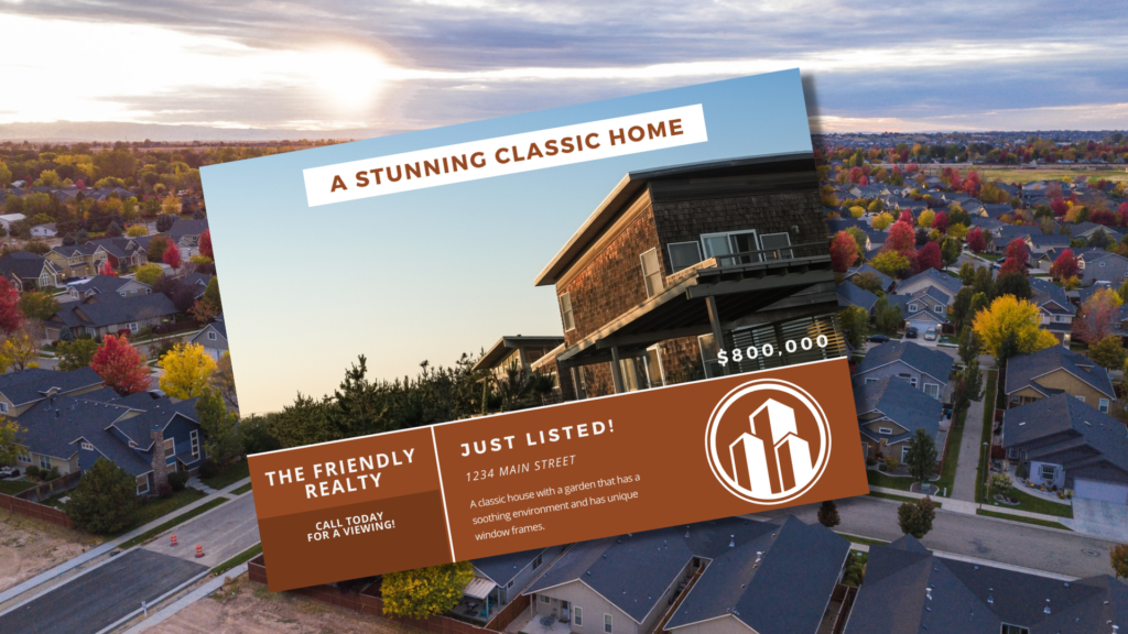 Are you aiming for new listings, buyer leads, or general brand awareness? Your goal will determine your design and messaging.